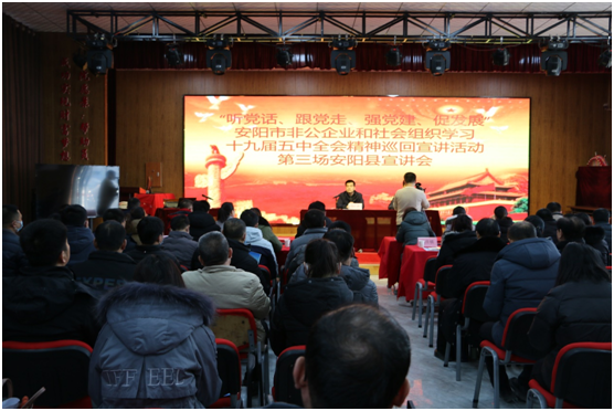 2020年12月30日下午3時(shí),安陽市非公企業(yè)和社會(huì)組織公司十九屆五中全會(huì)精神巡回演講活動(dòng)在鑫達(dá)公司多功能廳舉行。安陽縣組織部,非公企業(yè)黨工委,非公社會(huì)組織黨工委,縣屬非公企業(yè)和非公組織負(fù)責(zé)人,各鄉(xiāng)鎮(zhèn)負(fù)責(zé)人參加了會(huì)議。